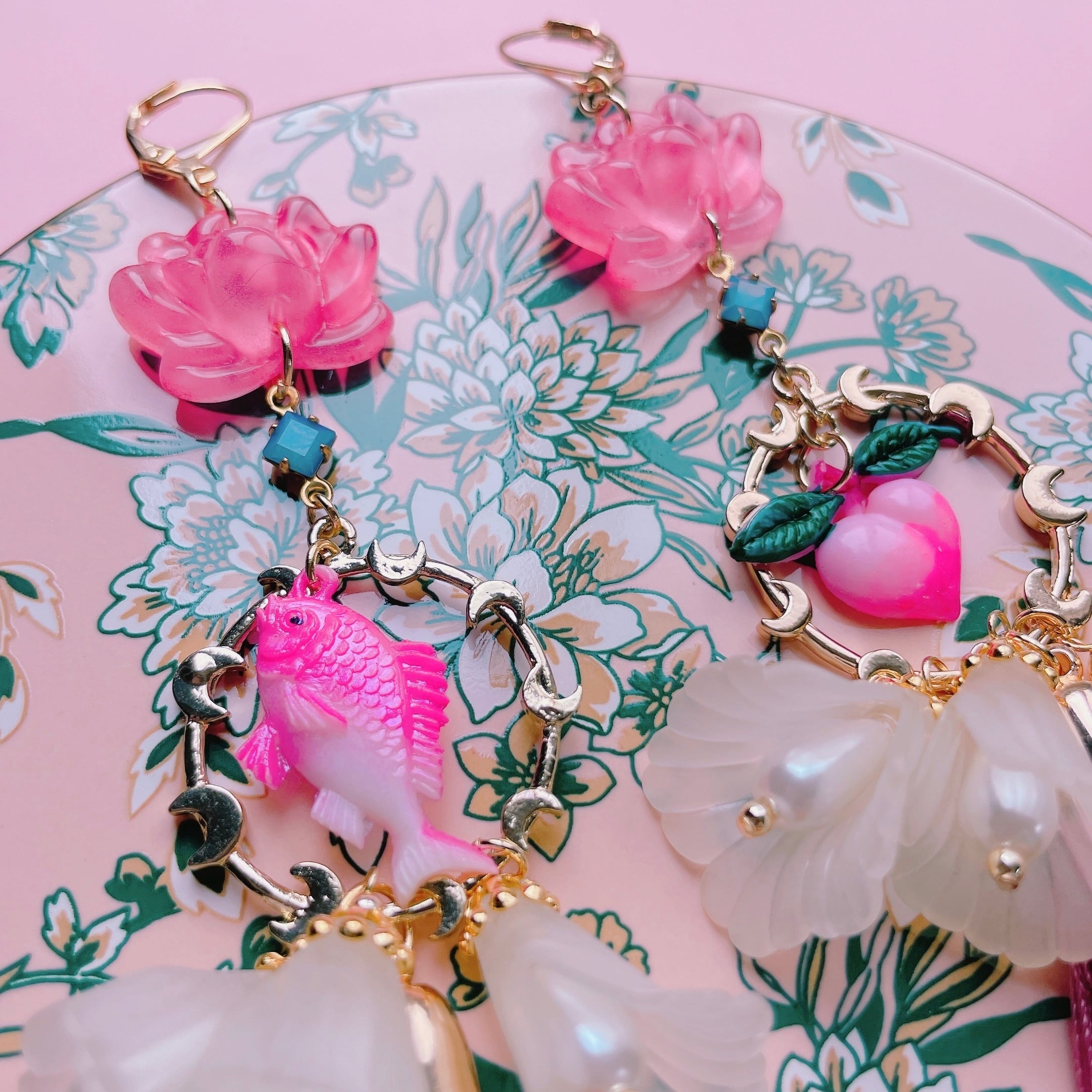 #和風 #モモ #魚 #睡蓮 #オリエンタル #着物