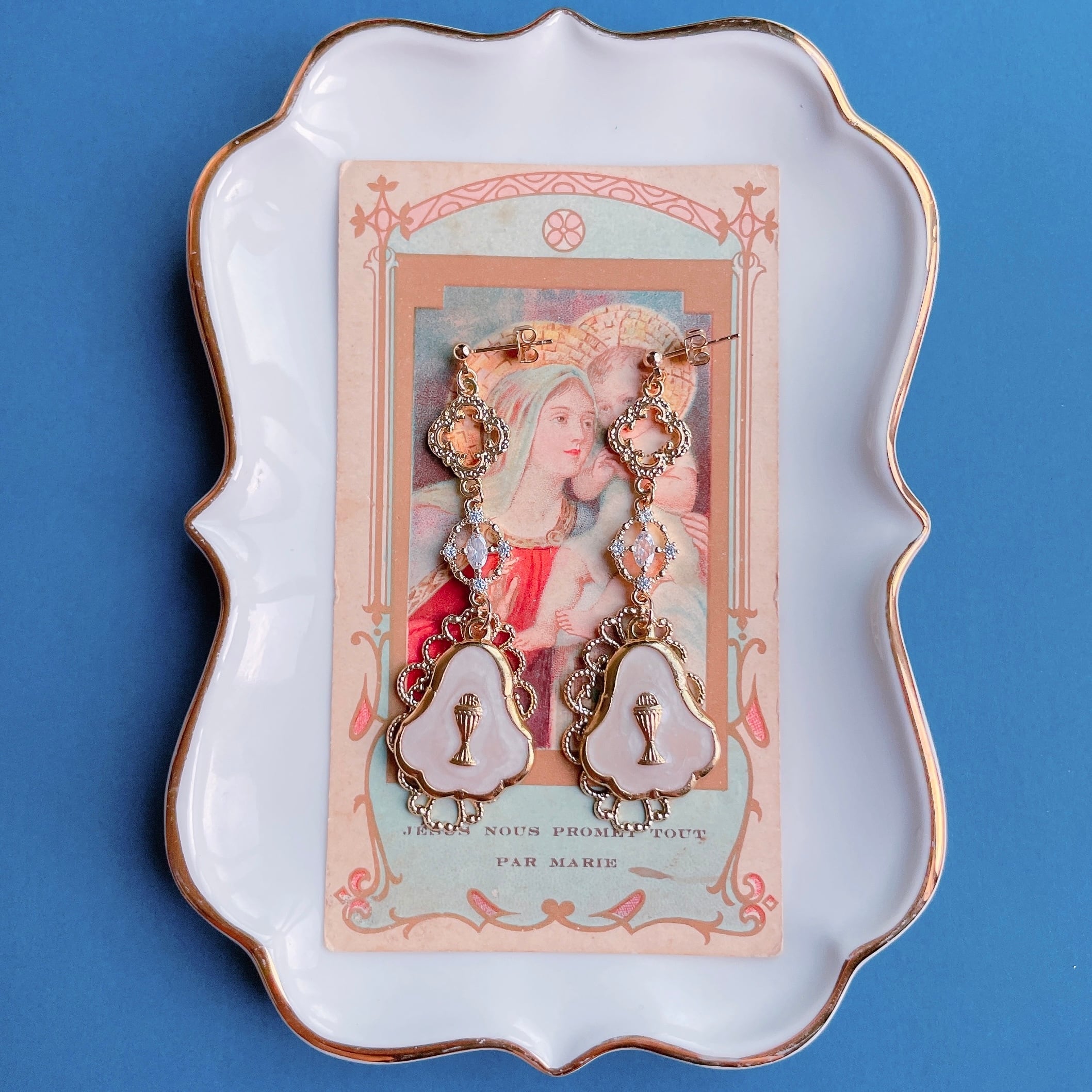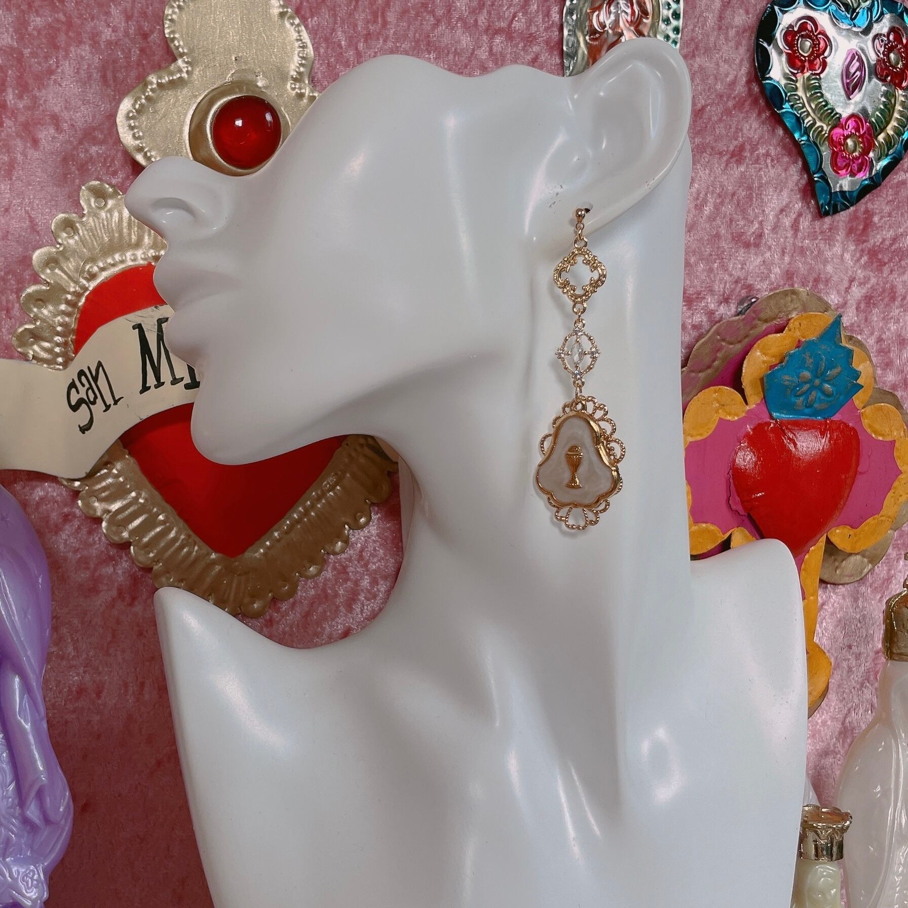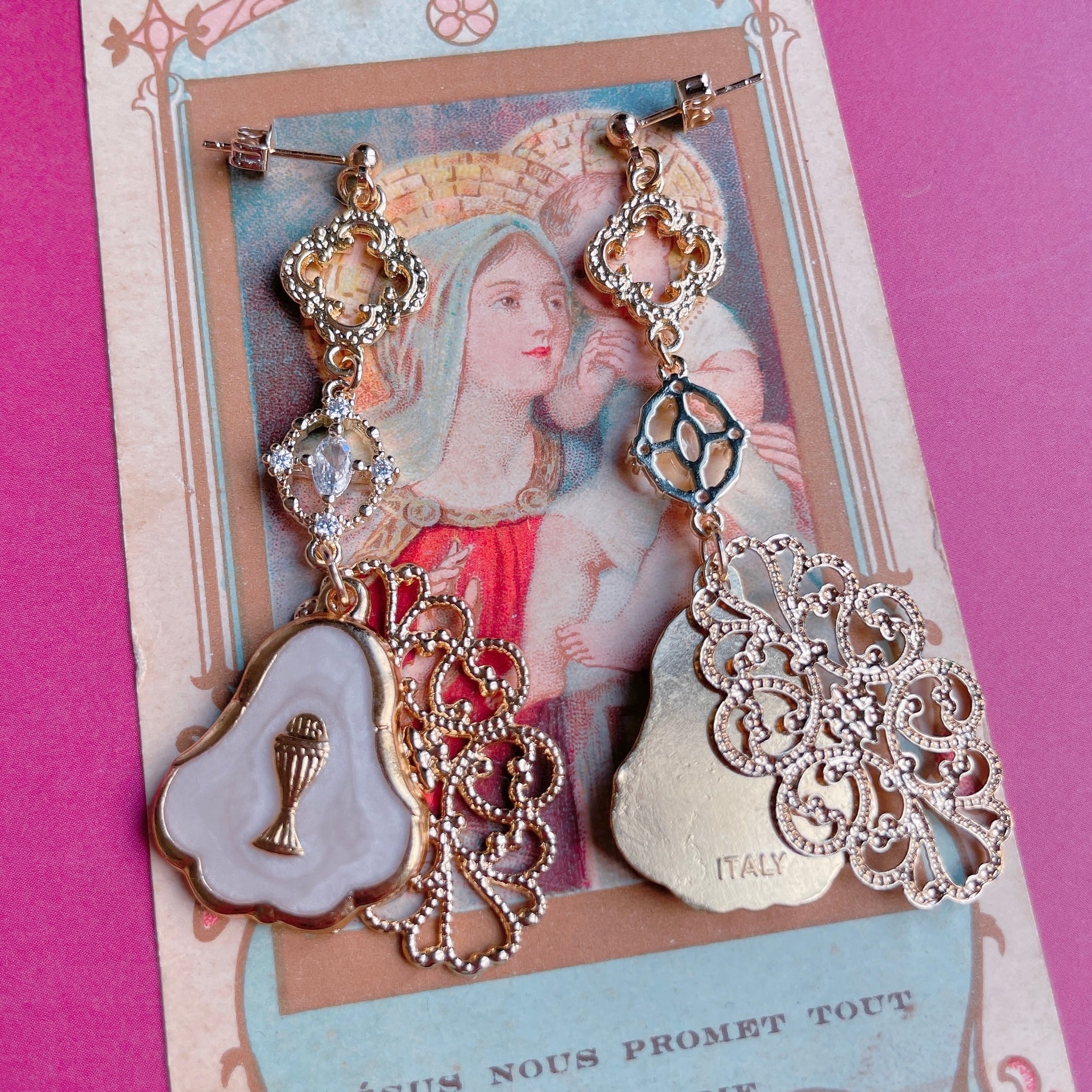 聖杯が描かれたイタリア製メダイの耳飾り。