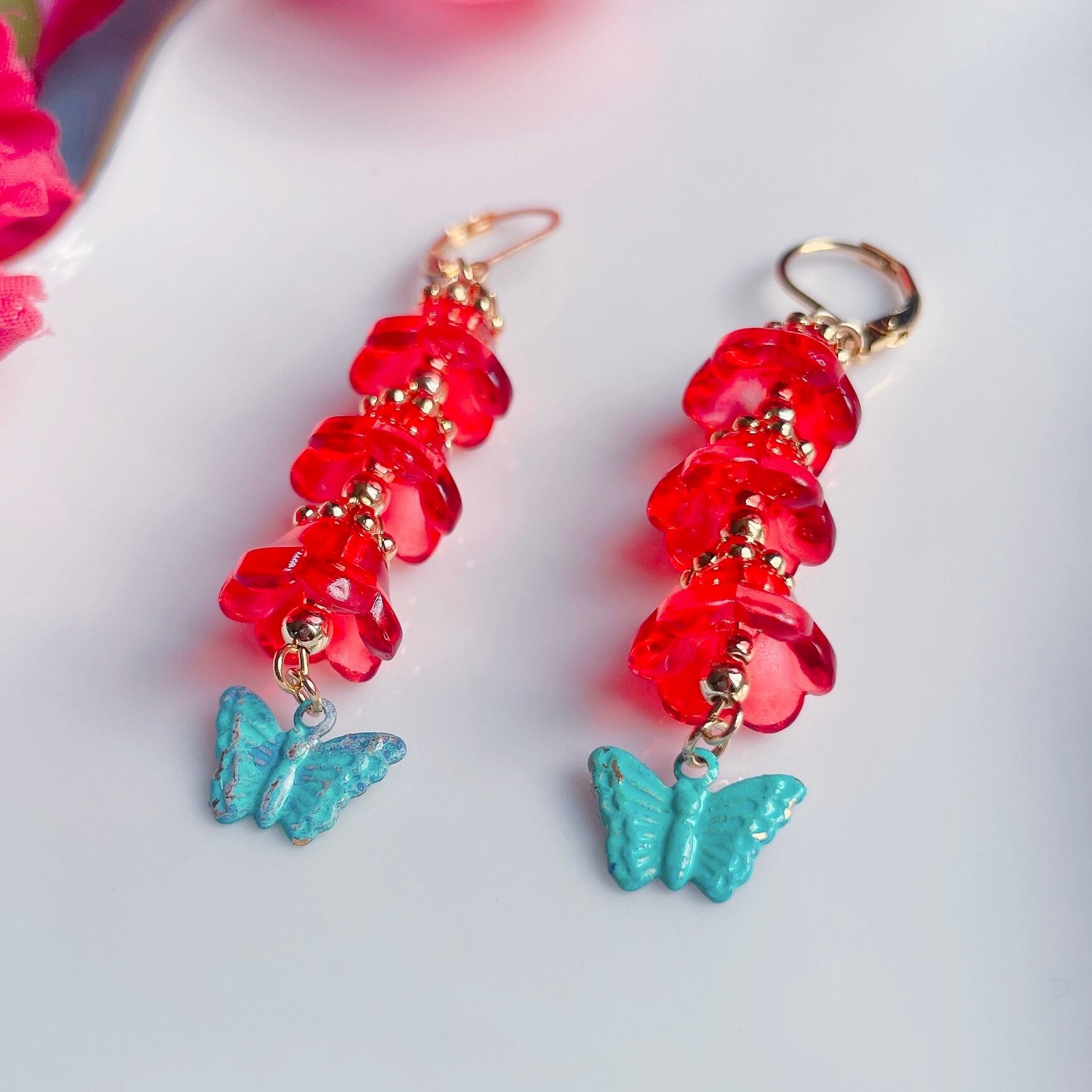 #ビンテージ #レッド #フラワー #チェコビーズ