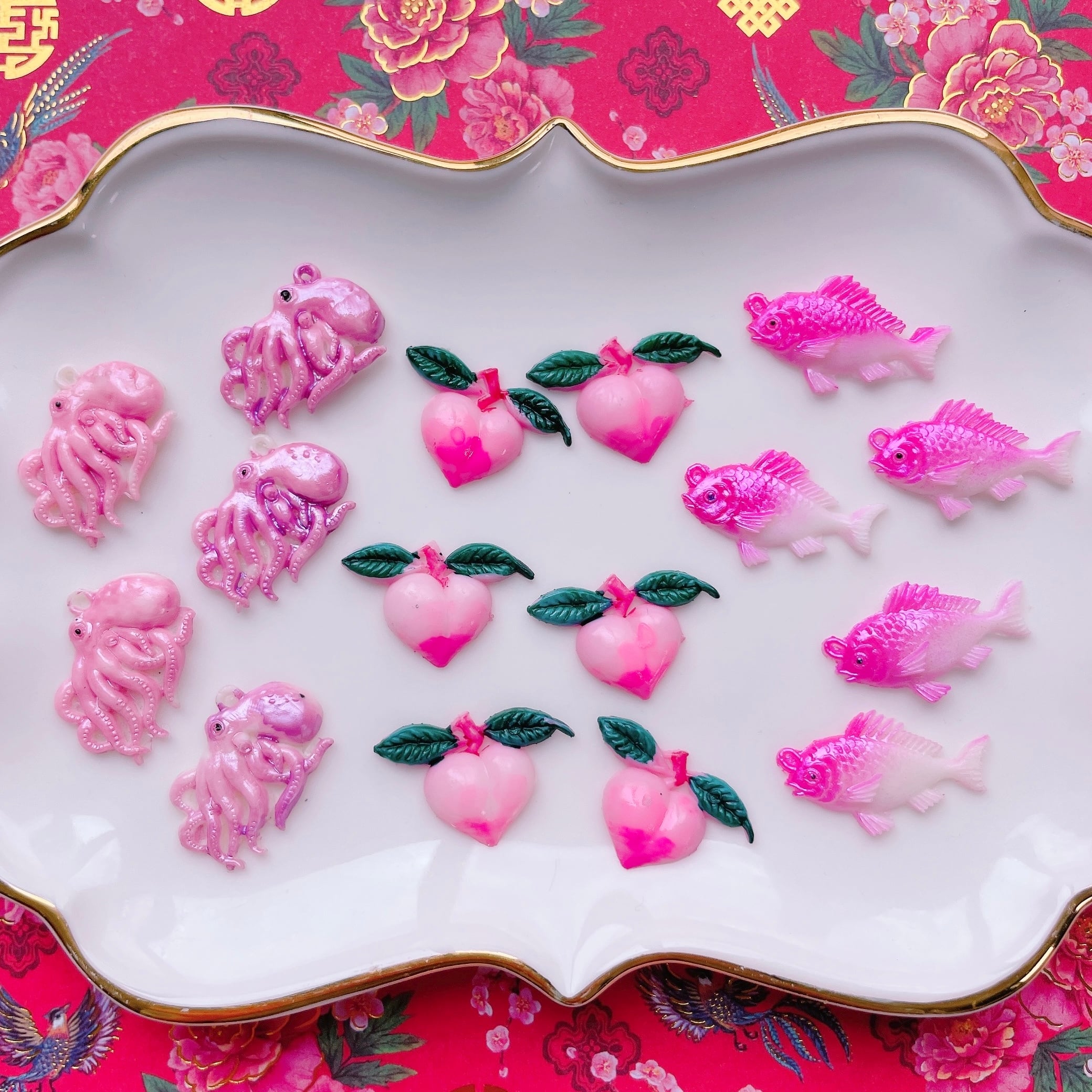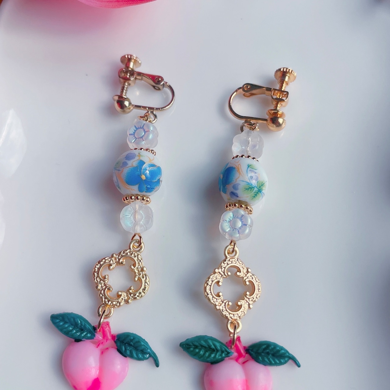#ピンク #ピーチ #フルーツ #セルロイドカボション