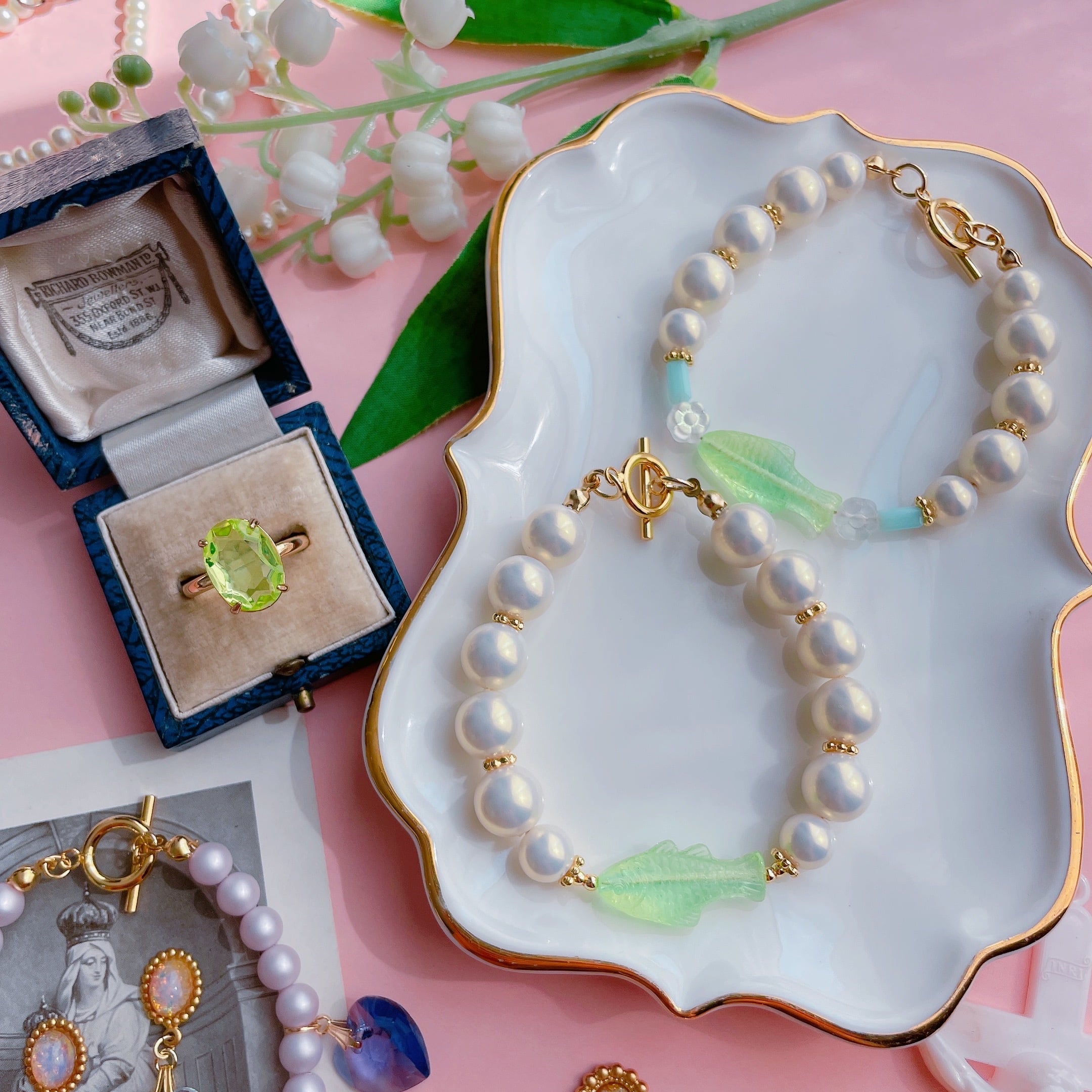 #ライトグリーン #ゴールド #蛍光 #チェコガラス