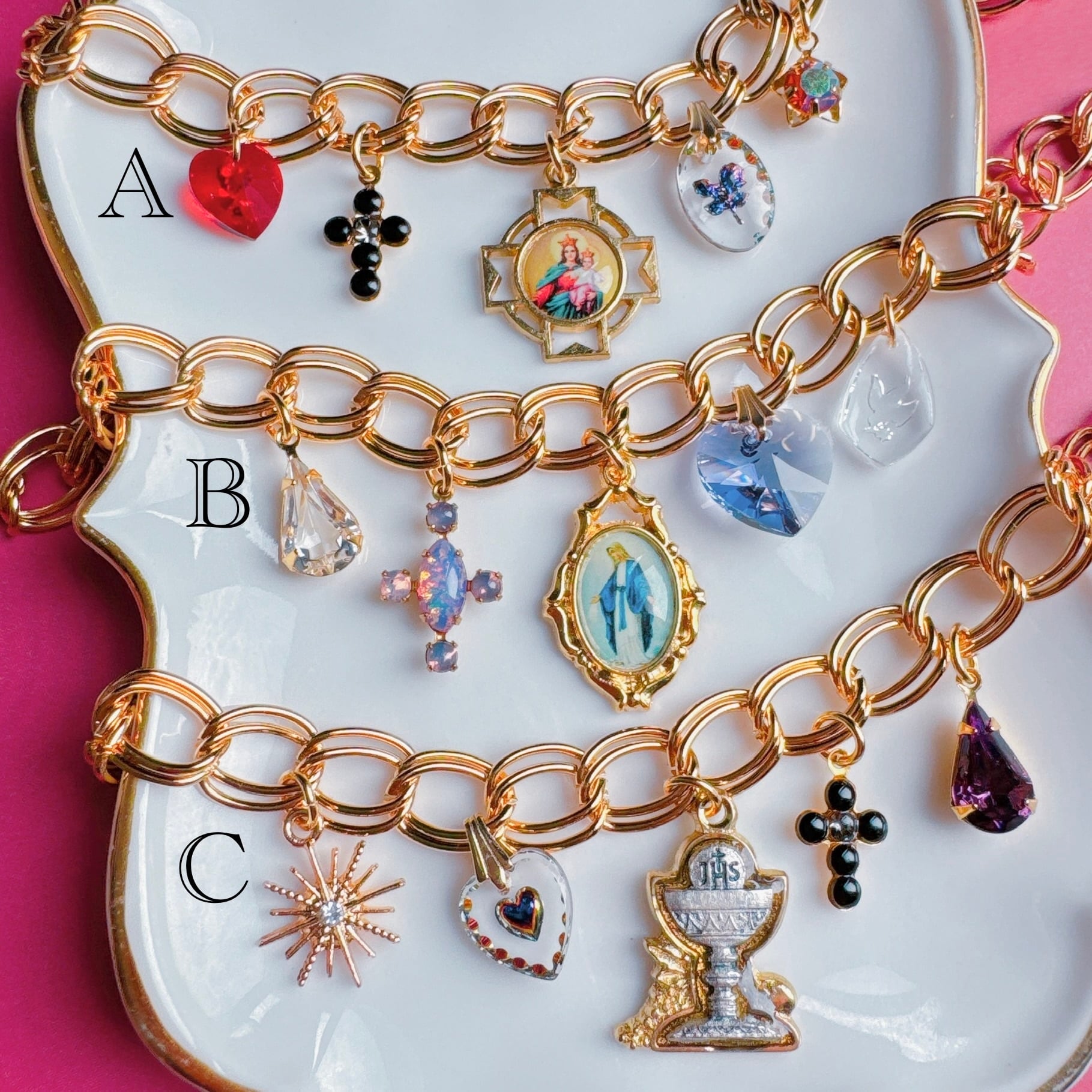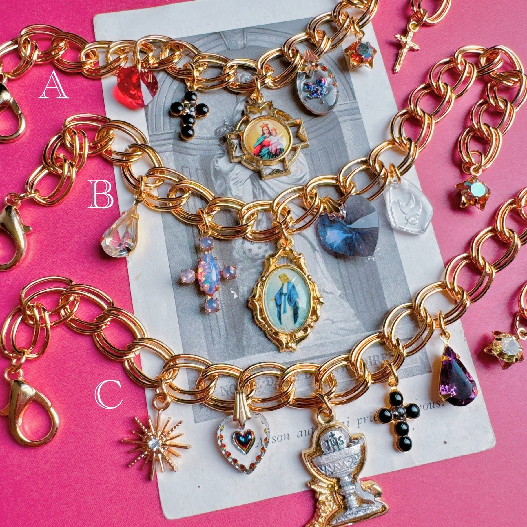 ●中央のメダイ、Aのチェーンの先の十字架