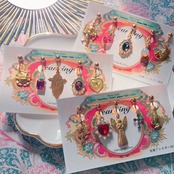 USA製真鍮チャームやヴィンテージストーン、スワロフスキー、煌びやかなビジューチャームなどを組み合わせたイヤリング 5粒セットです。