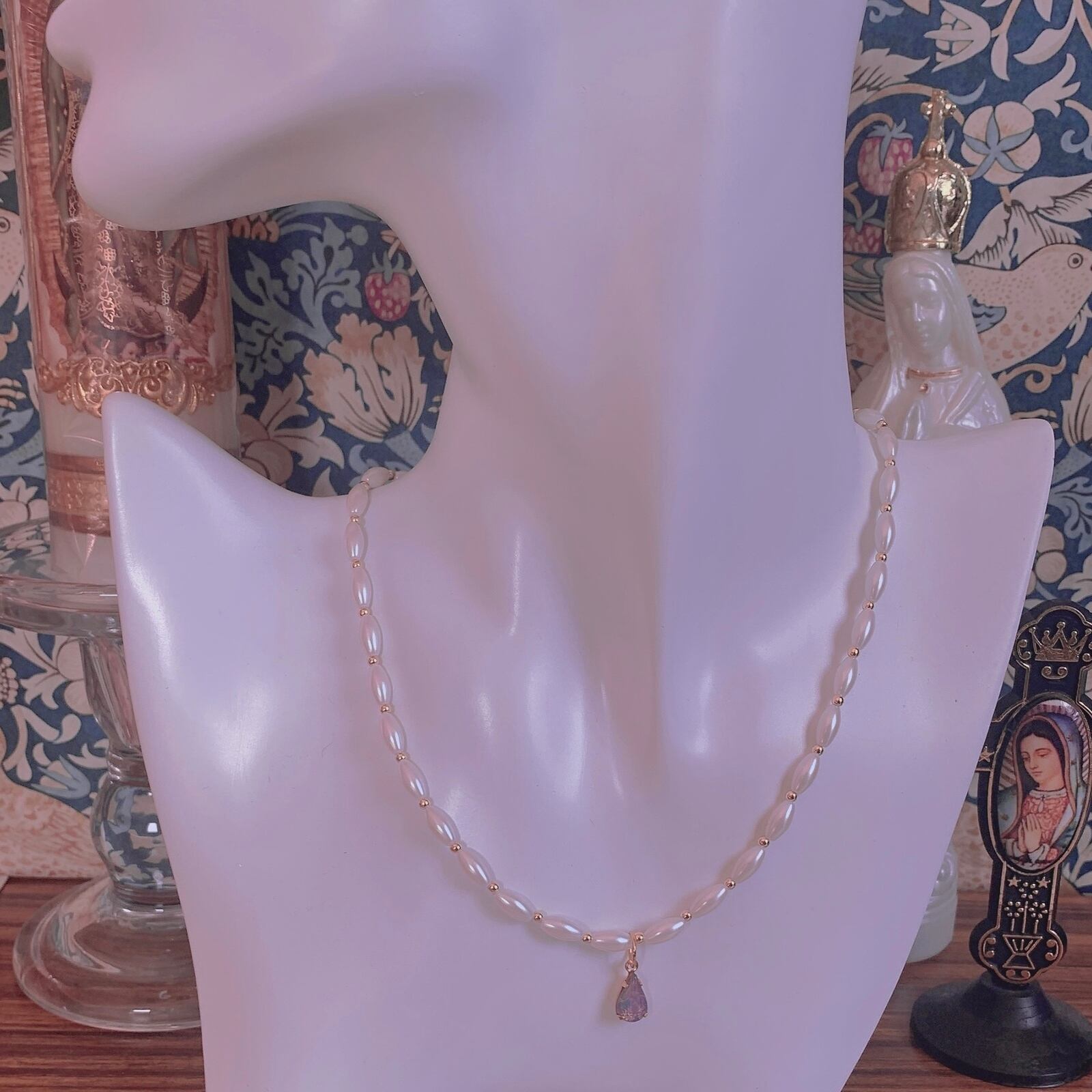 チャームのつけ外しができるのでお花だけにしてみたりファイヤーオパールだけにしてみたり、さらにチェーンのみでもシンプルなビーズネックレスとしてお楽しみいただけます◎