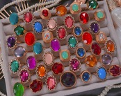 ドイツやチェコ、アメリカなど様々な国で製造されたヴィンテージカボションを使用したカラフルな指輪たち。
