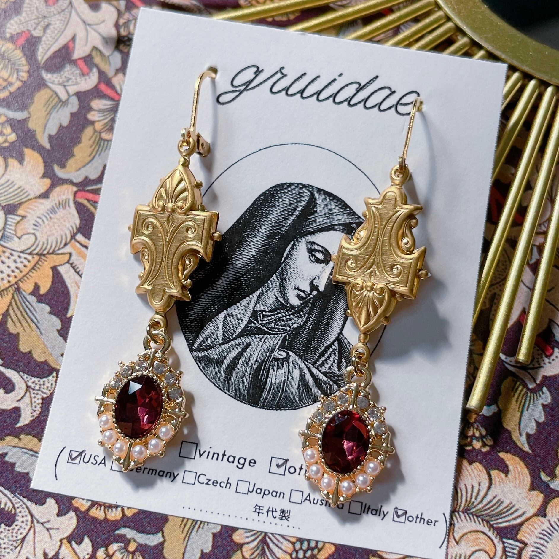アメリカ製の真鍮コネクターときらびやかなビジューの耳飾り。