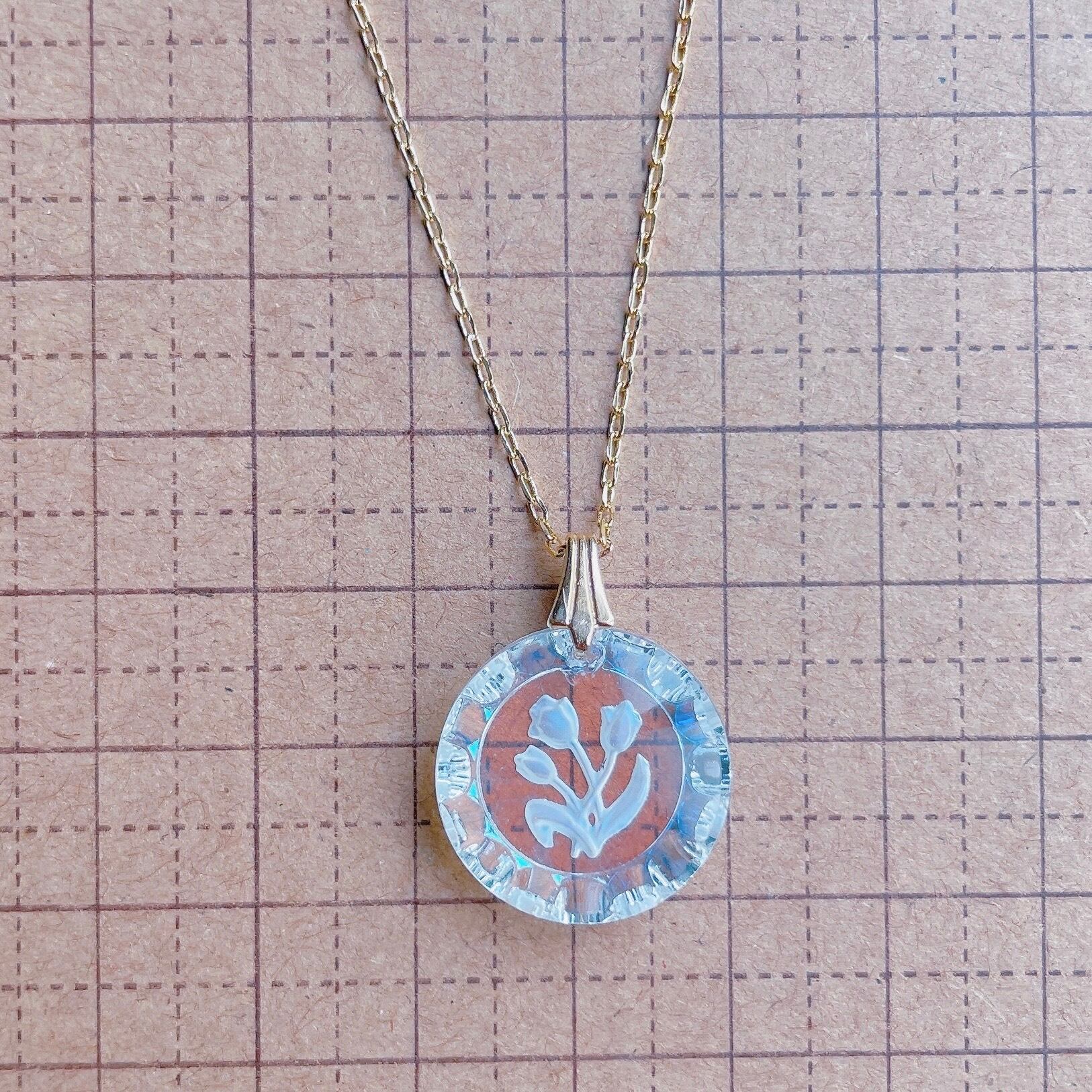 チューリップのインタリオのネックレス。