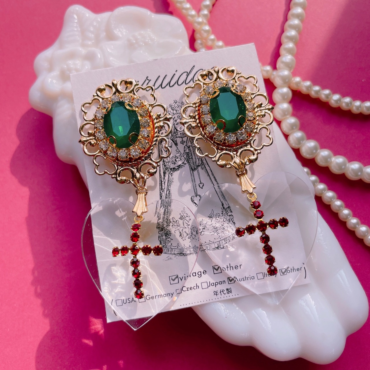 とうめいハートとビジューの耳飾り(イヤリングのみ)